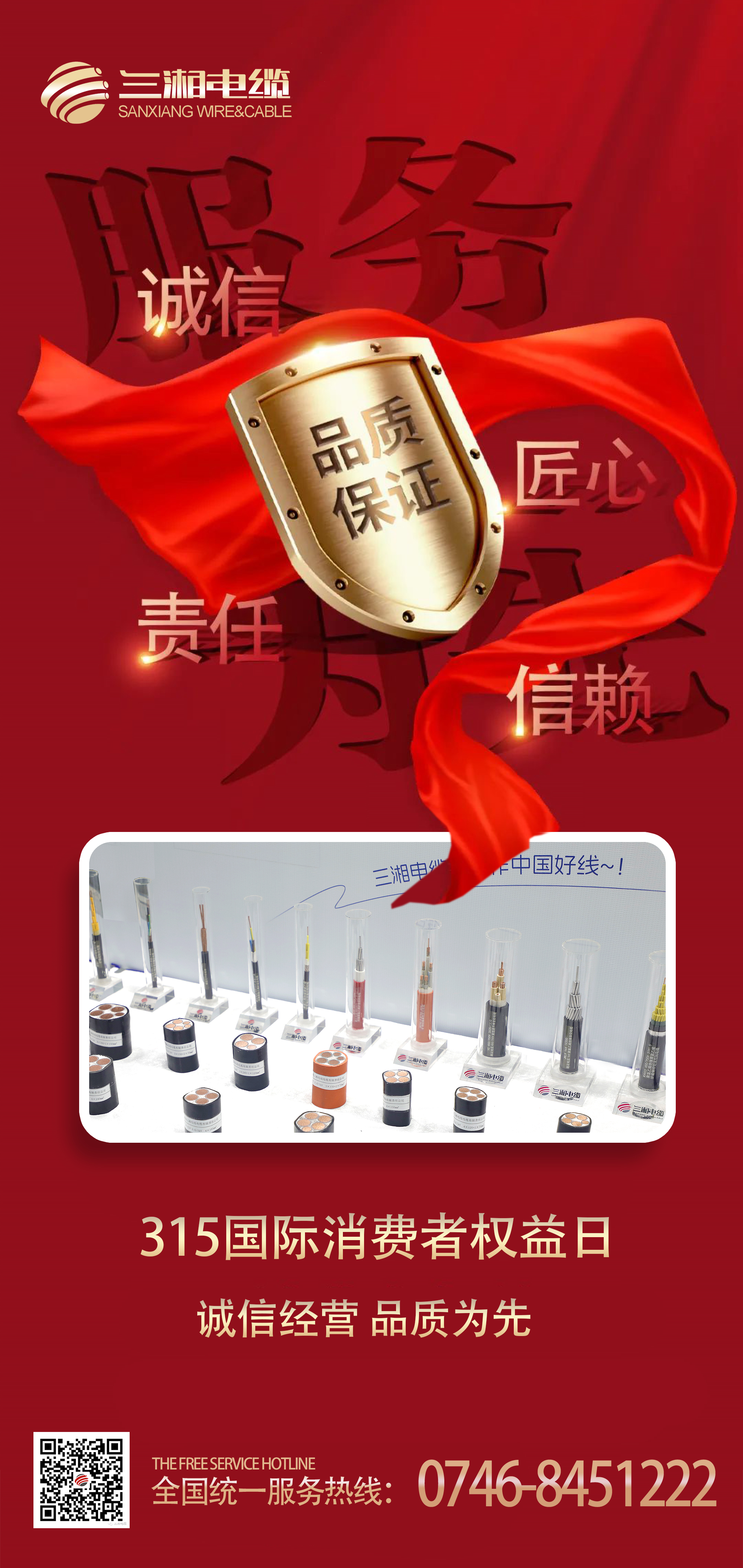 3·15消費(fèi)者權(quán)益日到了,誠(chéng)信一直是三湘電纜自始至終堅(jiān)守的使命與責(zé)任,作為高品質(zhì)電線電纜制造商,三湘電纜從1999年創(chuàng)立至今,25年來踐行誠(chéng)信的態(tài)度始終如一,堅(jiān)持以高質(zhì)量的產(chǎn)品品質(zhì)保障消費(fèi)者對(duì)線纜的需求,以“服務(wù) 品質(zhì) 誠(chéng)信 共贏”的核心發(fā)展理念贏得客戶的滿意與認(rèn)可!